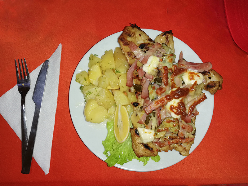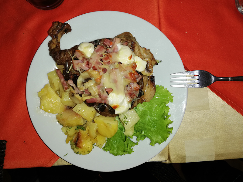 Първо започнахме както си му е реда – ракийка, салатка… Трябва да кажа, че според мен храната не беше никак лоша – хората се постараха (а може би винаги е така?)
