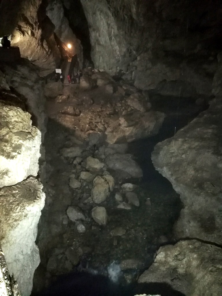 В пещерата не може да се снима, затова имам снимка пред нея – някакво мостче: