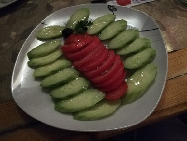 Вечерята… Някой би казал, поглеждайки менюто, от което трябва да избираш, че няма кой знае какво разнообразие. Но не е така. Бяха изброени 7 вида комплексни вечери, а при условие, че едва ли някой ще престоява тук повече от 2-3 нощувки, разнообразието си беше налице. При това имаше достатъчно както за вегетарианци, така и за месоядните.