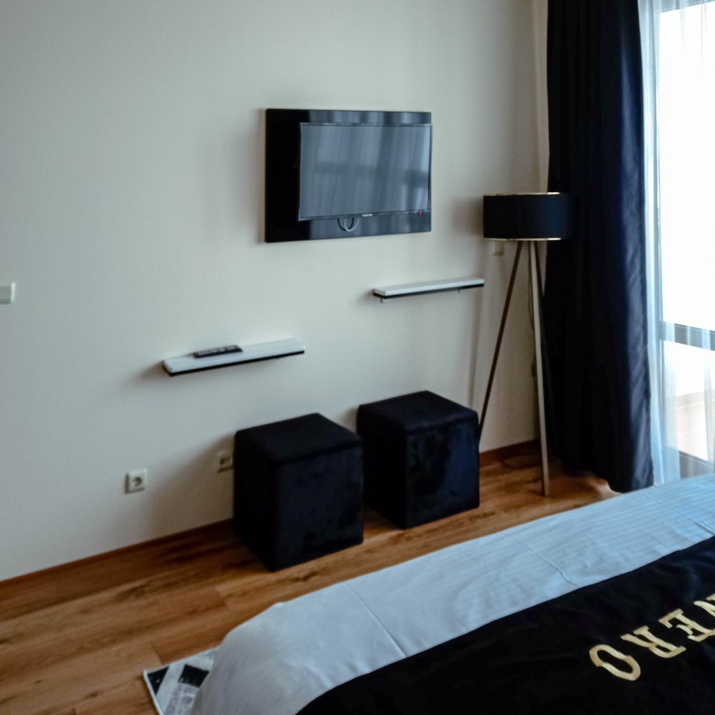 Стаята е удобна, голяма. Е, този път имаше и закачалки, контакти – с една дума всичко. Единственото нещо, което не разбрах, е защо в стаите от типа „двойна стая“ изобщо няма никакъв вид маса – дори и пластмасова на терасата. И това при условие, че има напълно оборудван (всичко е абсолютно ново) кухненски кът. Тоест, можеш да си готвиш, но ще ядеш стоешком?