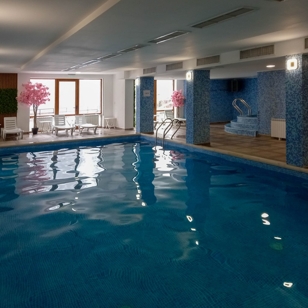 Басейна е абсолютно кристално чист. Водата, мисля, че беше около 30 градуса, джакузито – е доста по-топло.